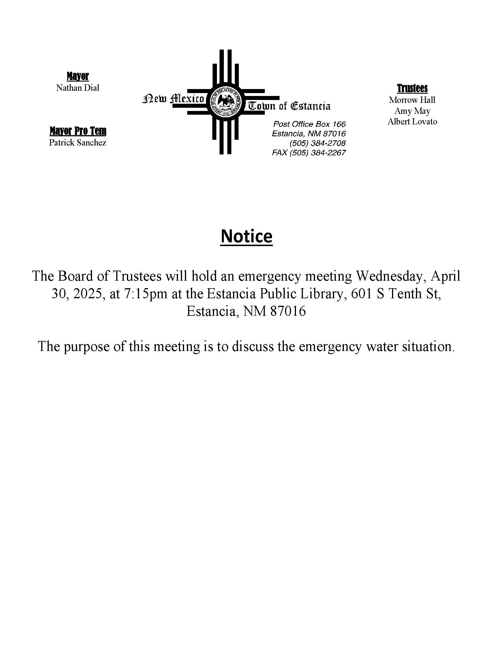 ©2025 Town of Estancia all rights reserved | Website Design and Development by Lobo Internet Services